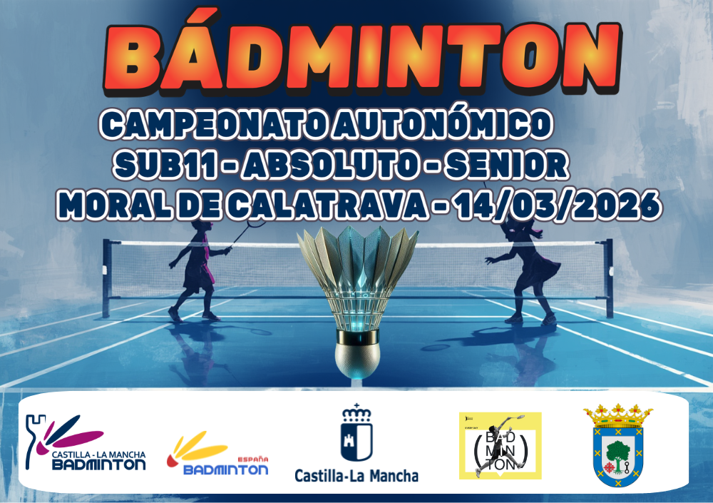 El próximo 14 de marzo se desarrollará el Campeonato Autonómico SUB11, Absoluto y senior de la presenta temporada 2026. Organiza el evento el Club de Bádminton Moral de Calatrava y la Federación de Bádminton de Castilla-La Mancha. También colabora el Ayuntamiento de Moral de Calatrava, la Diputación provincial de Ciudad real y la Junta de Comunidades de Castilla La Mancha.