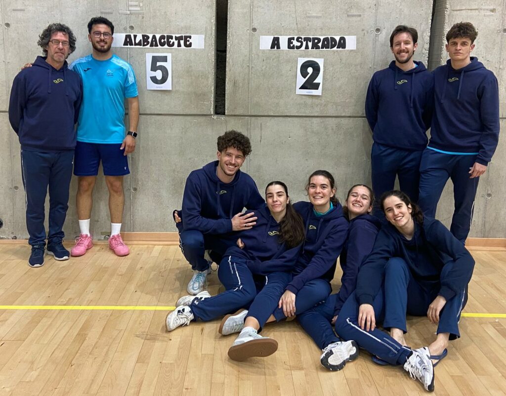 En el segundo encuentro, frente a A Estrada, el rival que en principio parecía más complicado, el equipo reaccionó con una gran actuación colectiva. El enfrentamiento comenzó con una importante victoria en el doble mixto, donde Mario Serrano y Lucía Marqueño superaron a la pareja inglesa John-Pinto por 11-10 en el quinto y definitivo set. A continuación, los dobles masculino y femenino, formados por Mario Serrano y Miguel Serrano Quereda, y por Loreto Marco y Blanca Yélamos respectivamente, se impusieron con autoridad por 3-0 en ambos casos, situando el marcador en un claro 3-0. El punto definitivo llegó de la mano de Blanca Yélamos en su individual, asegurando la victoria del equipo, mientras que Antonio Bacete sumó posteriormente el quinto punto para cerrar el enfrentamiento con un 5-2.